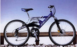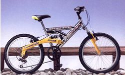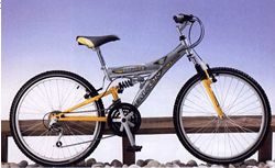 18 speed dual suspension, Shimano Revoshift controls, black resin V style brakes, alloy rims.